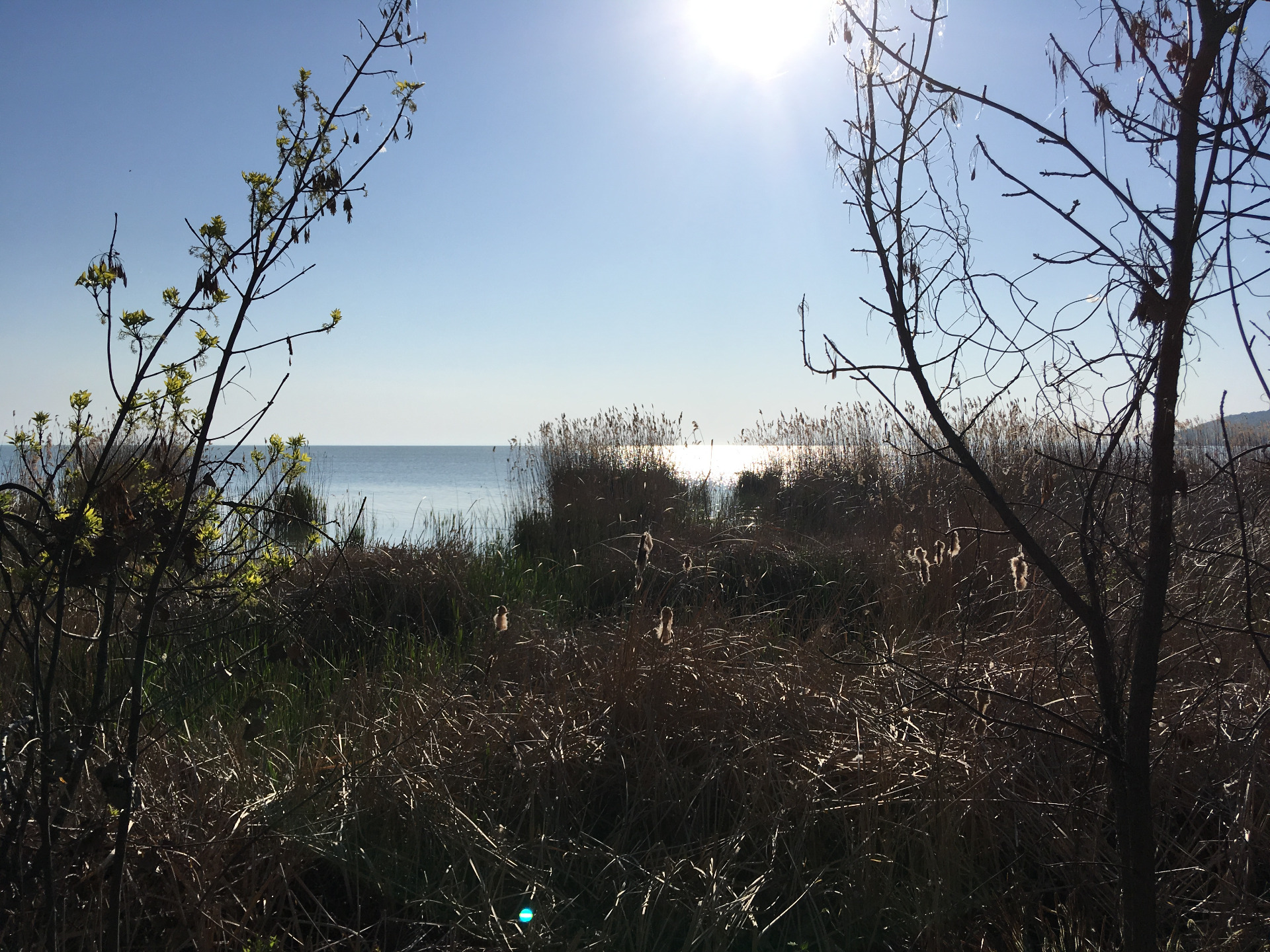 Újabb meseszép helyre értem, a Káli-medence, körös-körül apró falvak templomtornyokkal, a tanúhegyek és sok szőlődomb kis pincékkel és présházakkal. Itt látni a hosszan nyugat-kelet irányban hosszan húzódó kőtenger első köveit. Köveskálon újra töltöttem vizet és bal kanyarral követtem az utat Kővágóörs felé. A jobbra eső lapályban esősebb időszakban látható a Kornyi-tó víztükre, most csak zöldellő nádast láttam a tó helyén.