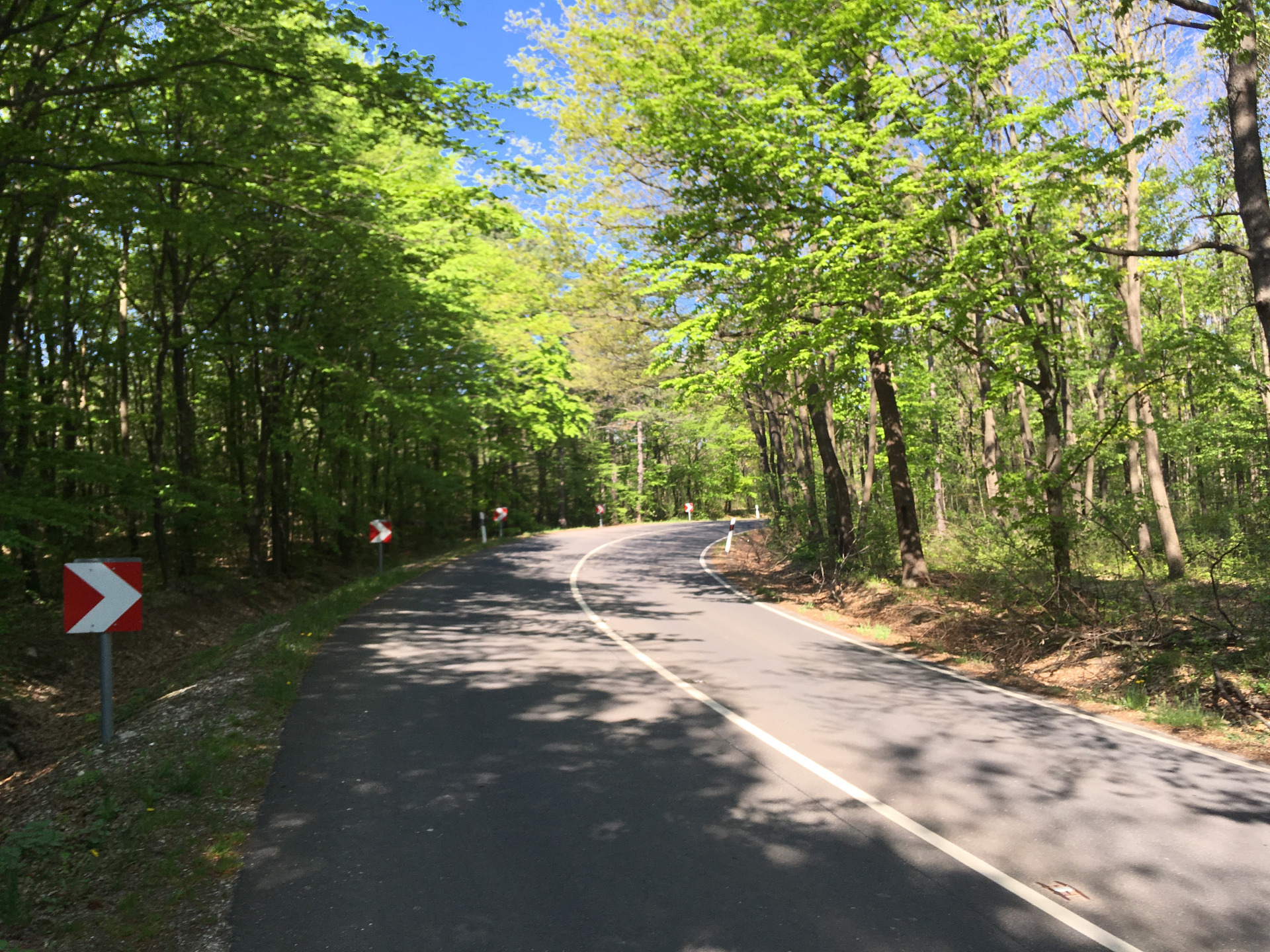 A pécselyi medencében enyhén hullámzó, nagyon jó minőségű úton futottam tovább, majd egy jobb kanyar után meg is érkeztem a "vászolyi sirató" emelkedőjéhez, ezt is megfutottam. Vászolyon kicsit élveztem a síkon való futást, aztán másztam tovább felfelé Dörgicse irányába, szép erdőben visz itt az országút.