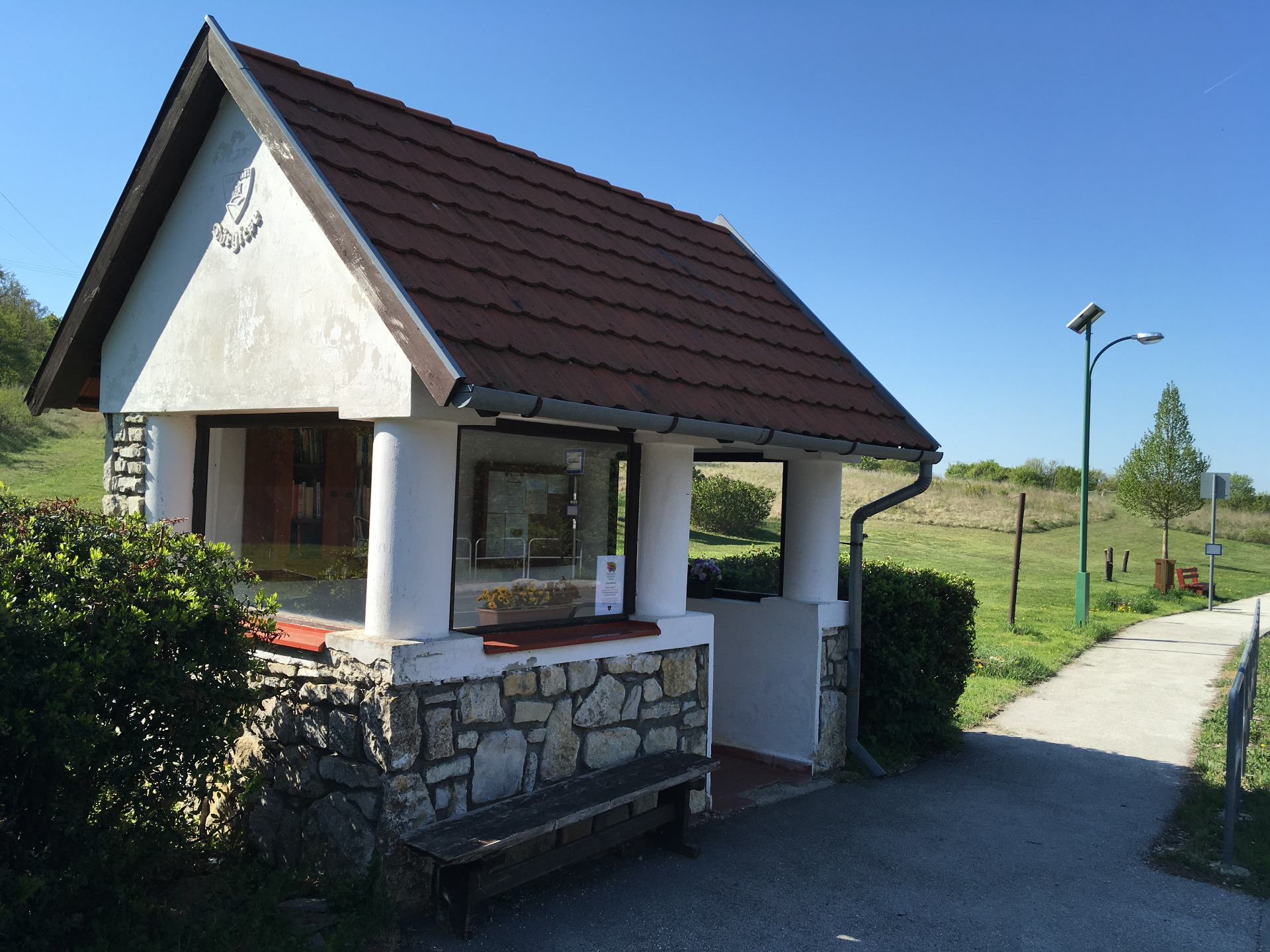 Ez az emelkedő már csak rövidke, fentről aztán megnyílik a kilátás, jó tempóban csapattam le Kisdörgicsére, festői környék, rend és tisztaság, még a buszmegálló is példaértékű (ülőpárnák, virágok, könyves szekrény!), jó, hogy idáig nem jutottak el a vandalizmusra hajlamos emberek.
