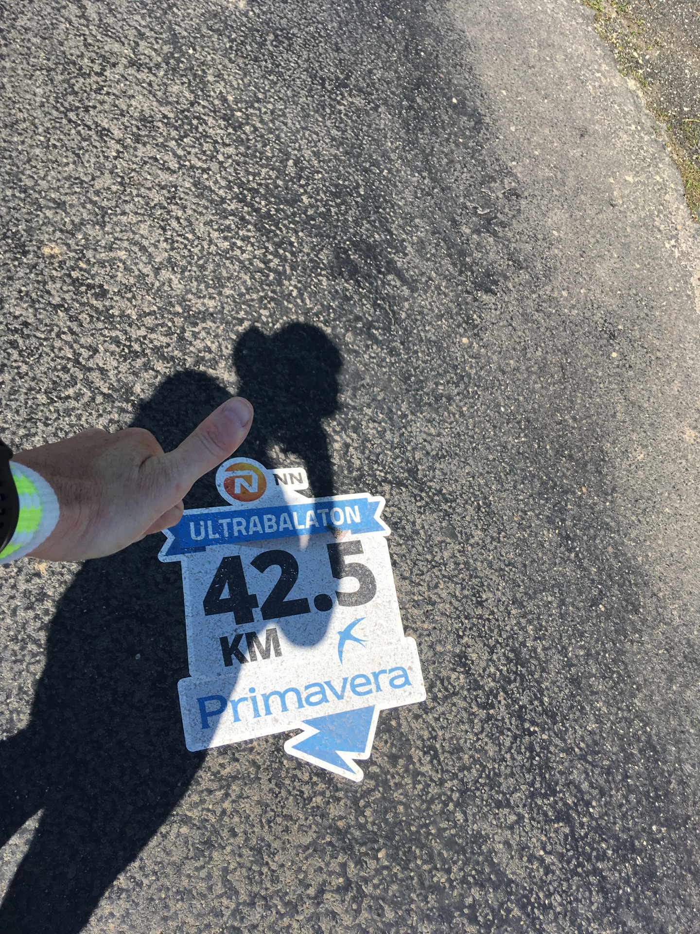 Akali és Zánka között ismét a bringaúton futottam, ahogy néztem igyekeznek rendbe tenni az UB-ra, amennyire lehet. Zánka elején 30 kilométernél gurult szemben Zsuzsi, megdézsmáltam a kulacsát, mondta, hogy rengeteg az autó az előttem álló szakaszon, vigyázzak magamra. Ez valóban is is lett, összefüggő karavánokban jöttek szembe az autók, valamint a Hegyestű mellett egy sárga pólós szintén "hosszútávfutó" (az első és utolsó futó volt akivel találkoztam az úton), a zsákjából legalábbis erre következettem.