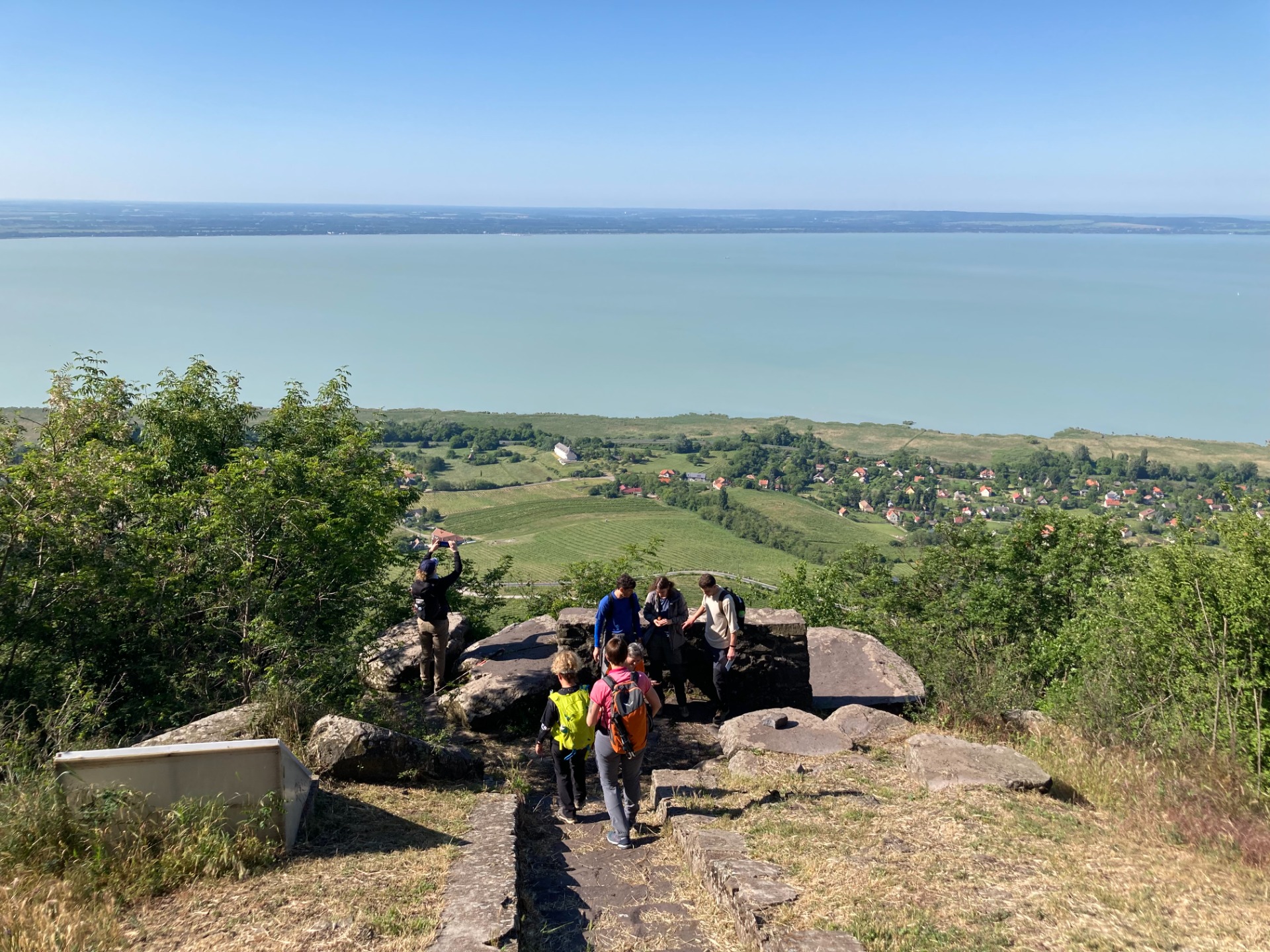 A Badacsony platóján aztán nagyon szép helyeken ment az útvonal, az első pecsételőhely a Ranolder keresztnél volt, csodás kilátással a tóra.