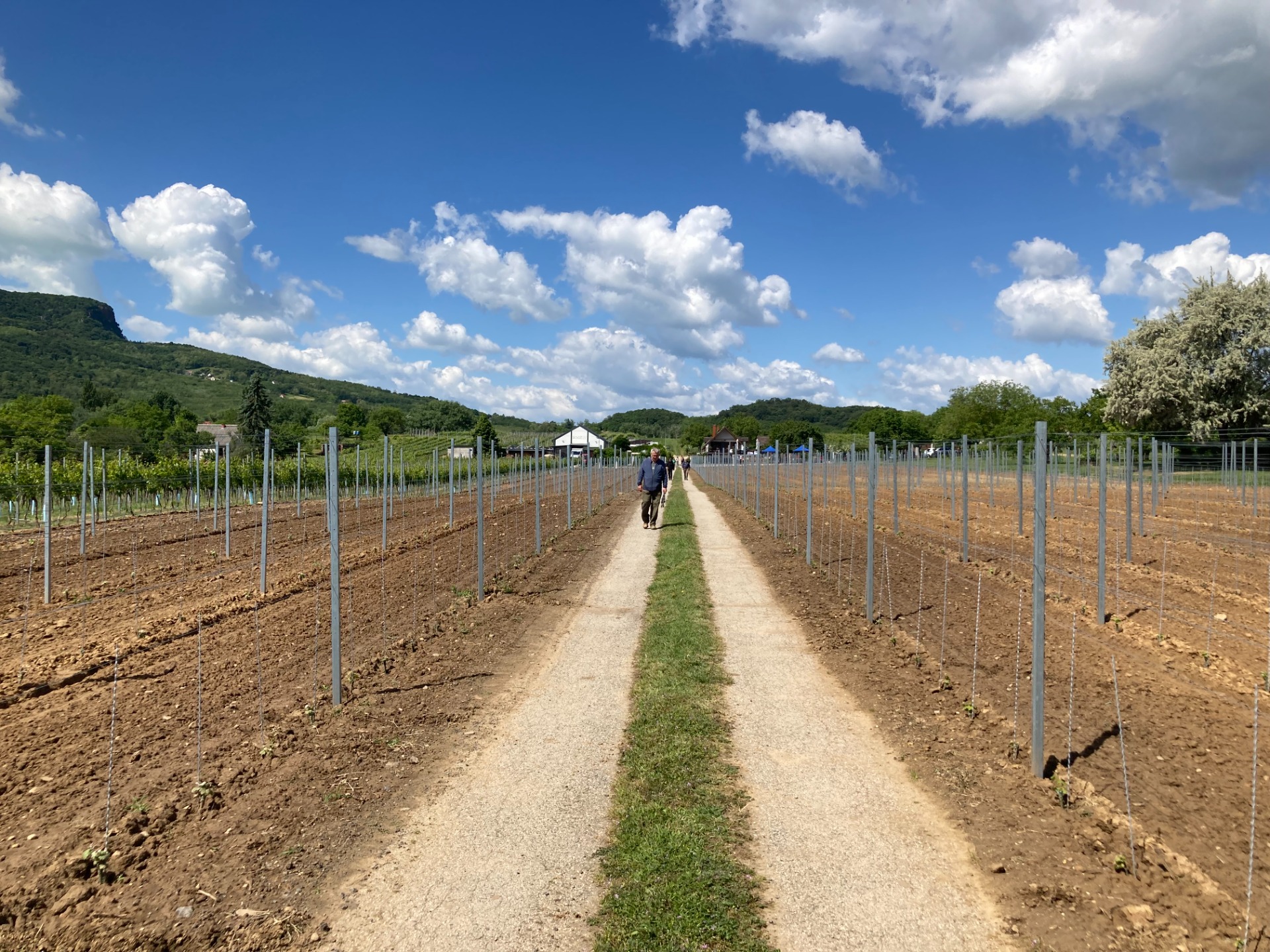Most a pincészet felett egy szép kilátást biztosító helyen volt a pecsételőhely, itt fröccs járt volna, de most ezt is kihagytuk.