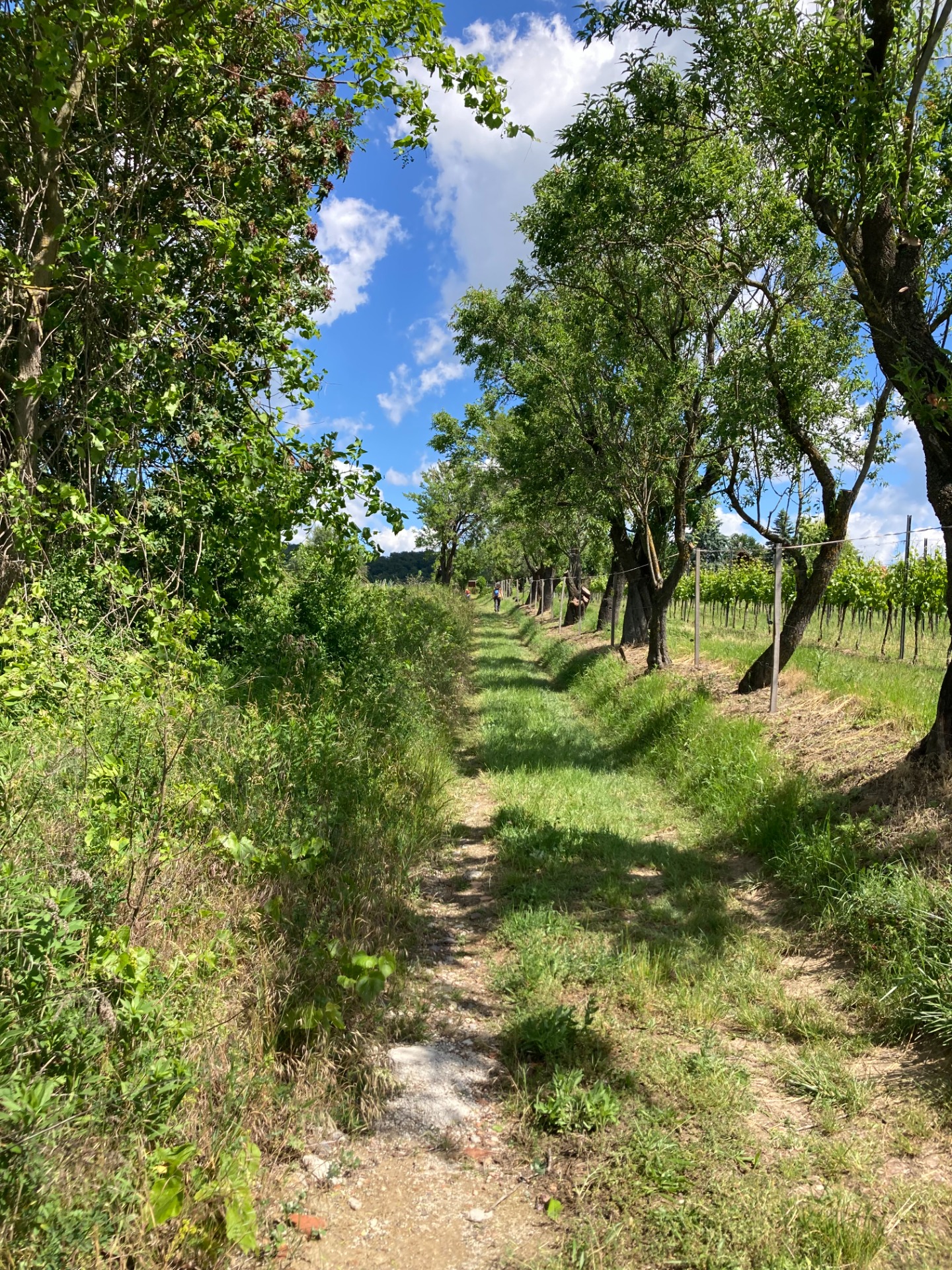 Miután megmásztuk az Örsi-hegy melletti hegyhátat, szép szőlők és pincék között ereszkedtünk le a Badacsonytomaj - Káptalantóti országútra.