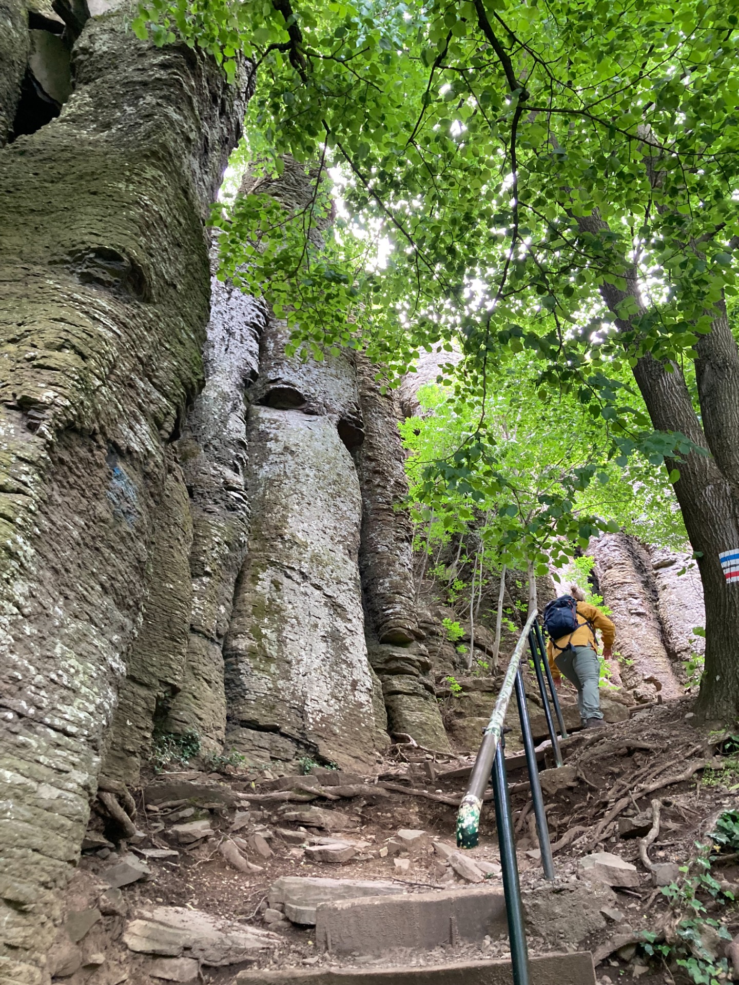 Visszaereszkedtünk a várból a faluba, majd megmásztuk a jóval elhagyatottabb Hálás-tetőt, itt a Kámon-kőnél volt egy lyukasztós pont.