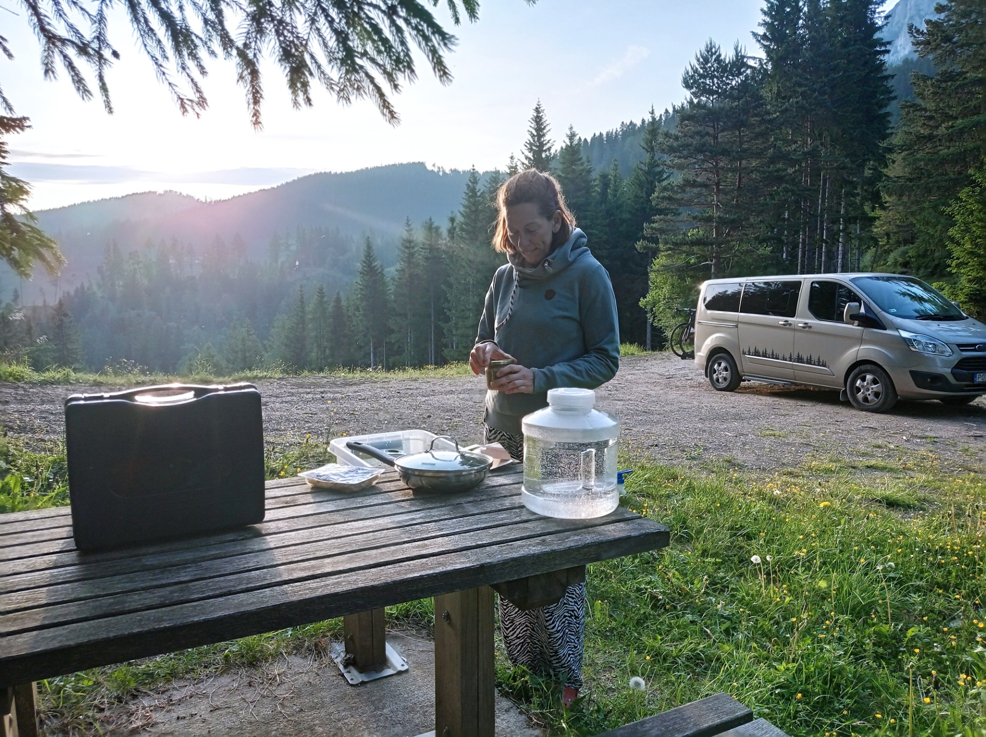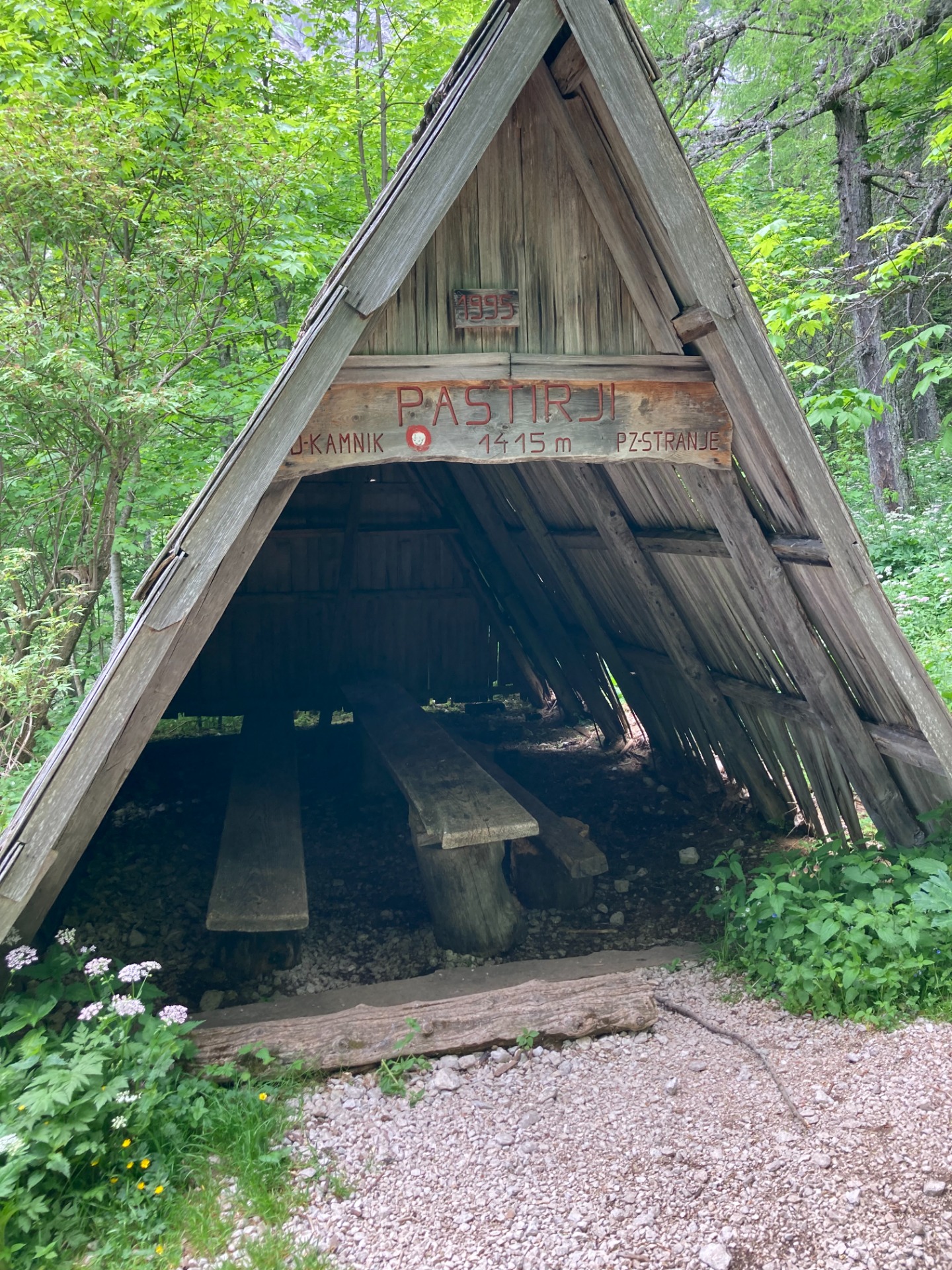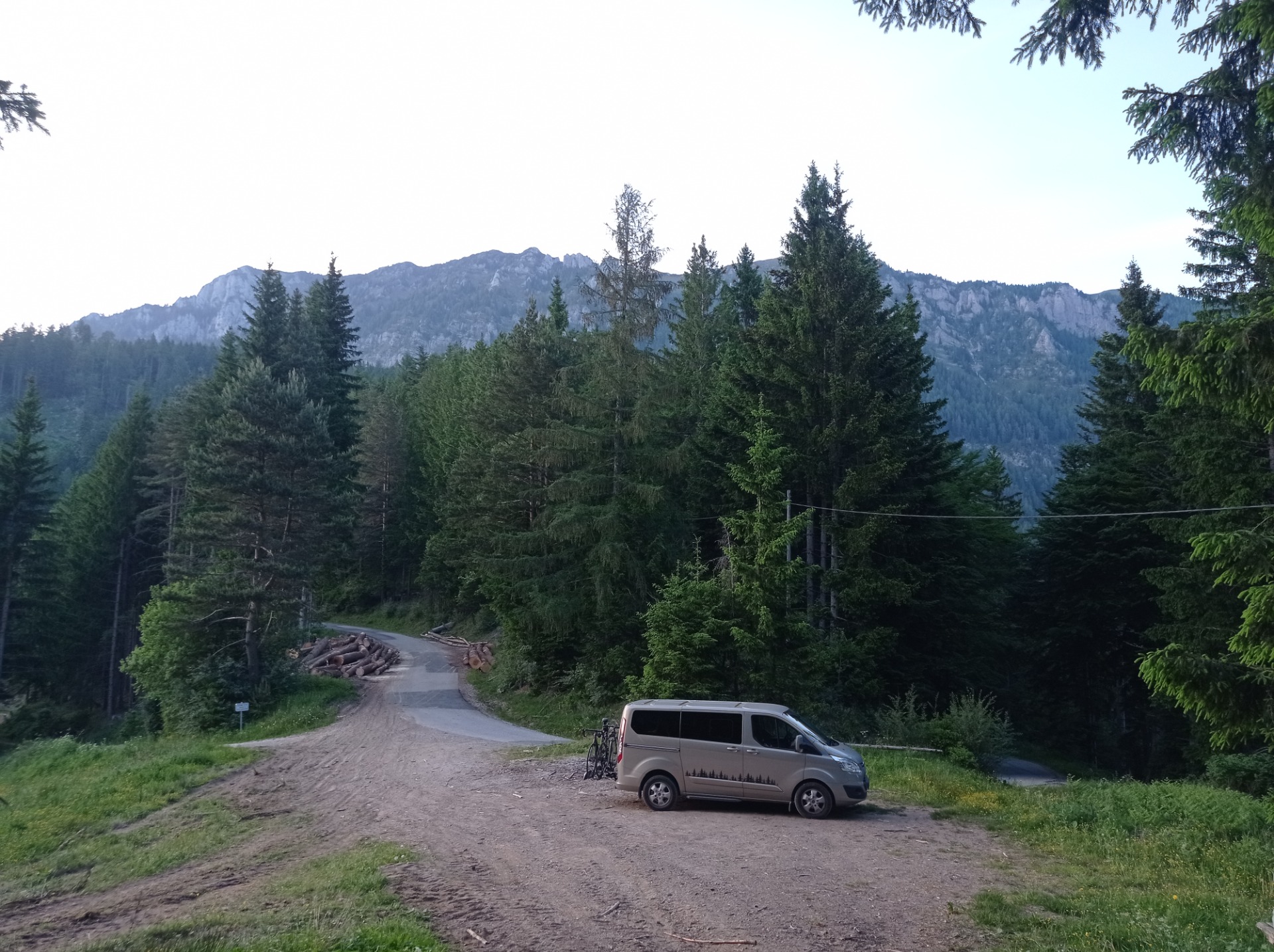 A parkoló nap közben már zsúfoltabbá vált, ezért úgy döntöttünk, hogy más alvóhelyet keresünk. Át is autóztunk a Kamniska Bistrica patak völgyének felső végénél lévő parkolóba.
