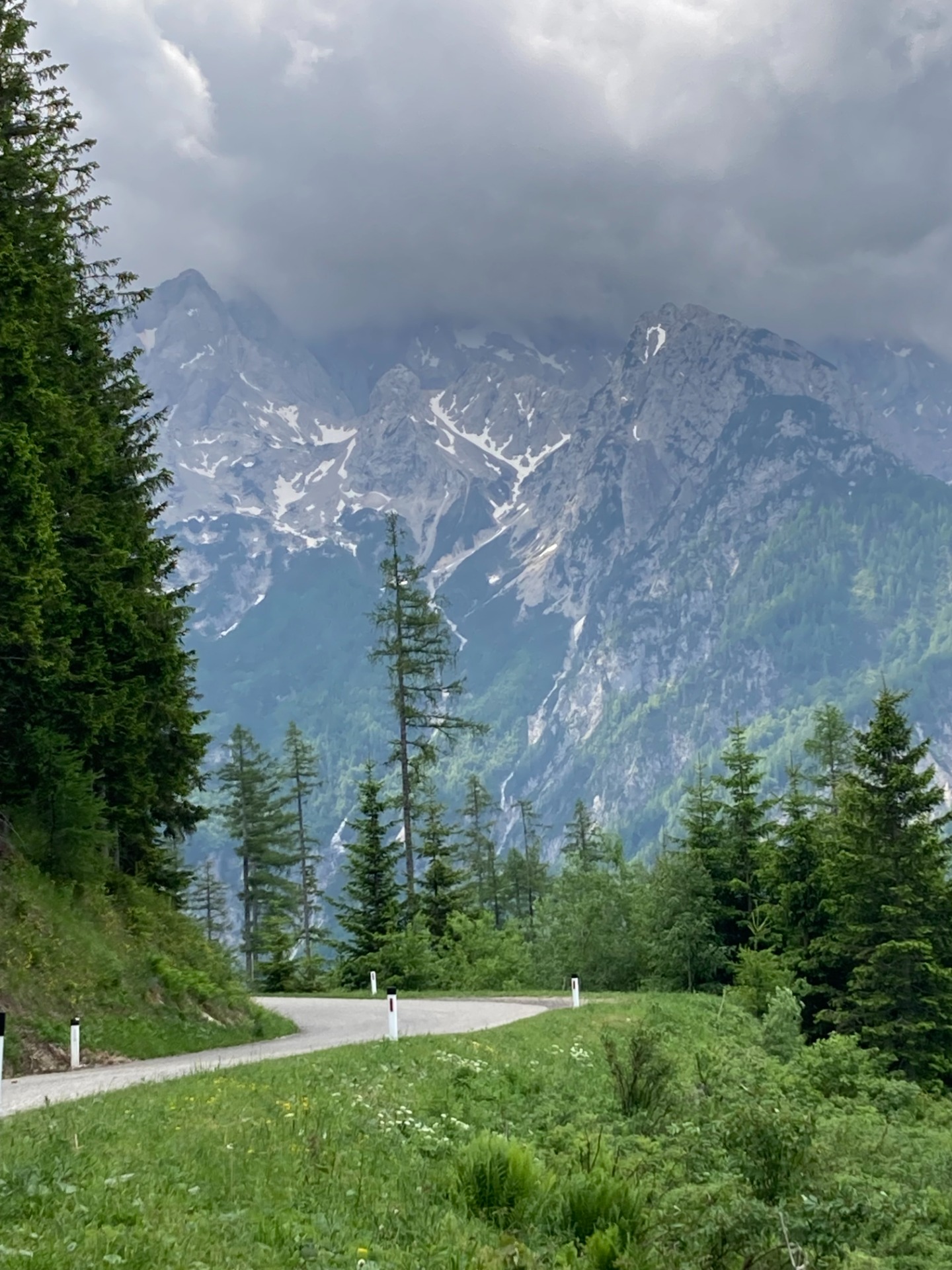 Péntek délután autóztunk egészen Celjéig, majd a Savica völgyében. A völgyből aztán felmentünk az ekkor még nagyon gyér forgalmú, egyébként igen népszerű Solcava panorámaútra.