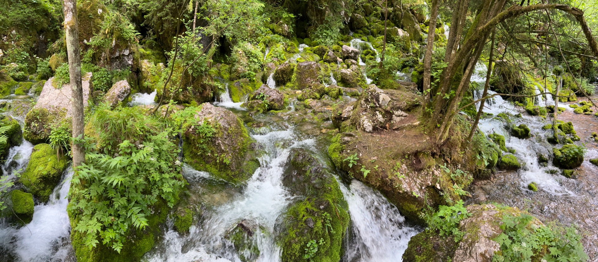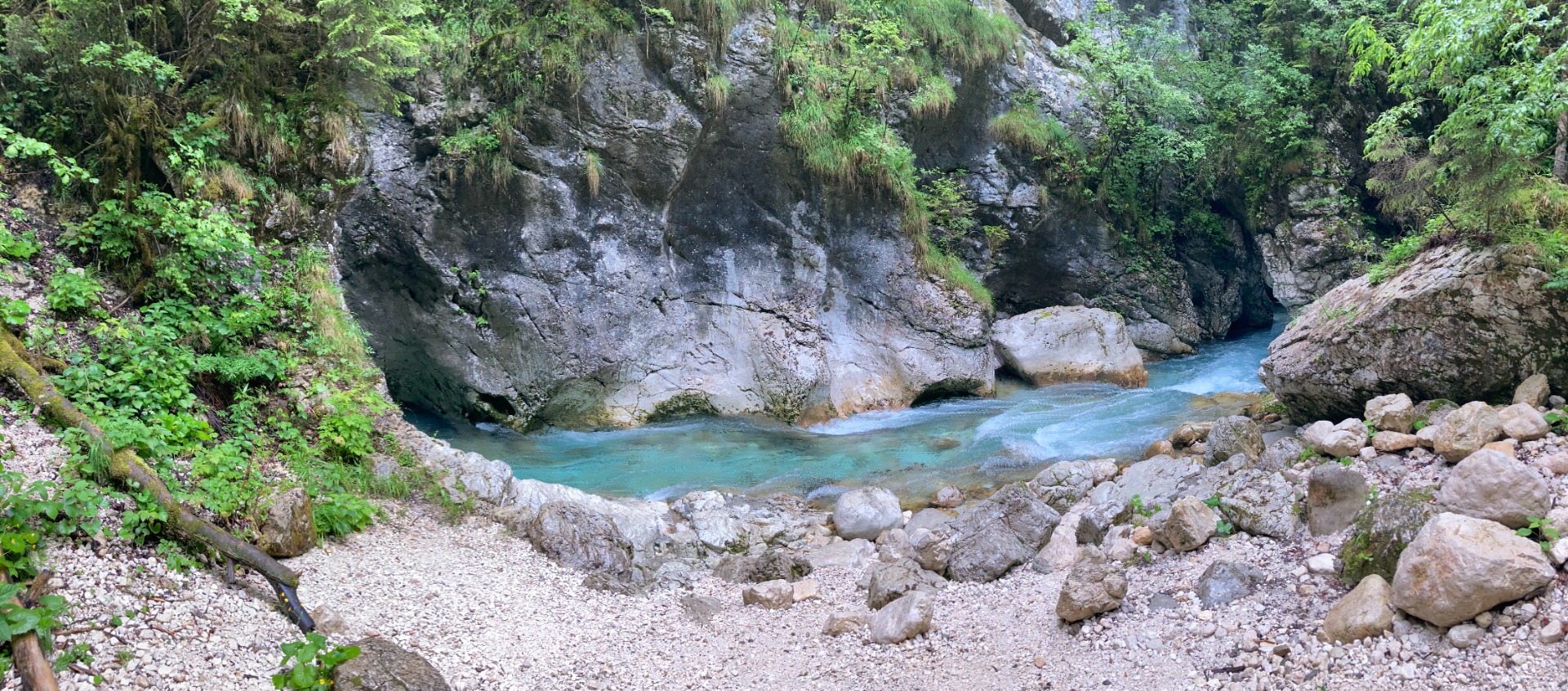 Igazi csoda hely ez is, égszín kék tóval, amelyet a patak közvetlenül itt fakadó bővizű karsztforrásai táplálnak. Körben pedig a Kamniki-Alpok sziklás csúcsai adták a panorámát.