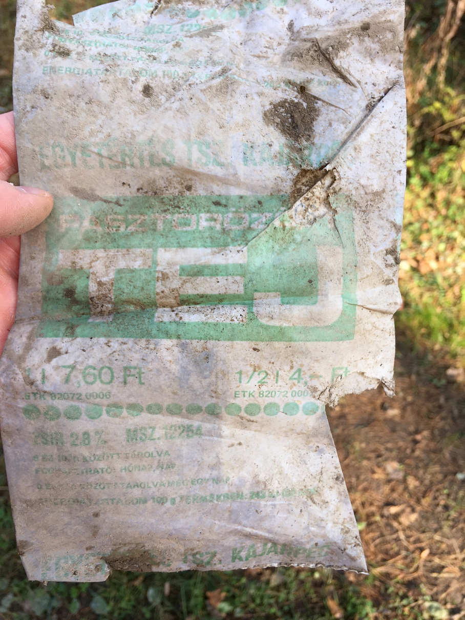 A hosszú hétvégi futásoknál igyekeztem új útvonalakat találni, csináltam 30 kilométeres terep karikát a Sokoróban, futás közben találtam egy körülbelül 35 éves tejeszacskót (Egyetértés TSZ Kajárpéc - 1 Liter: 7,60 Ft) elég jó állapotban, nem volt szívderítő látvány, ezek tényleg soha nem bomlanak le.