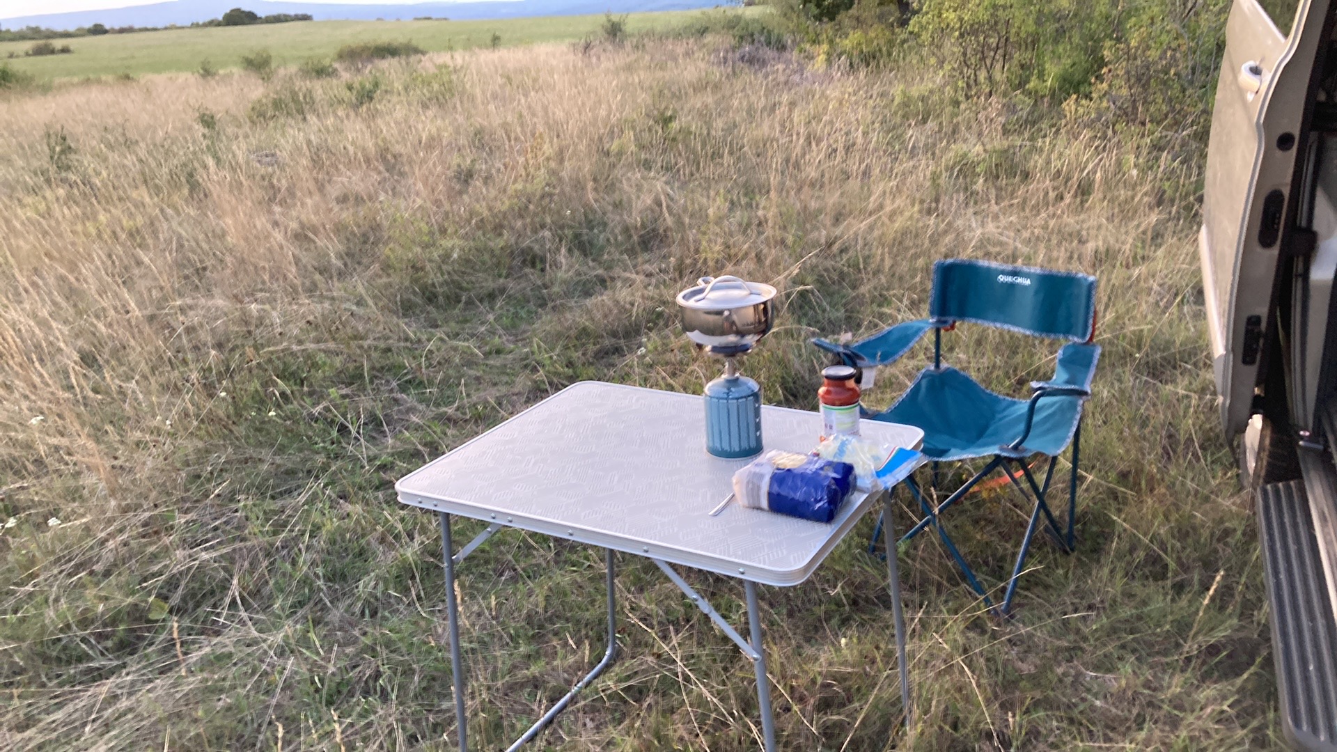 Még nem tettem ki az asztalt-széket és nem álltam neki tésztát főzni, mikor nagy nyikorgással érkezett egy terepjáró, morcos sofőrrel, aki mindenféle köszönés nélkül így nyitotta a beszélgetést: