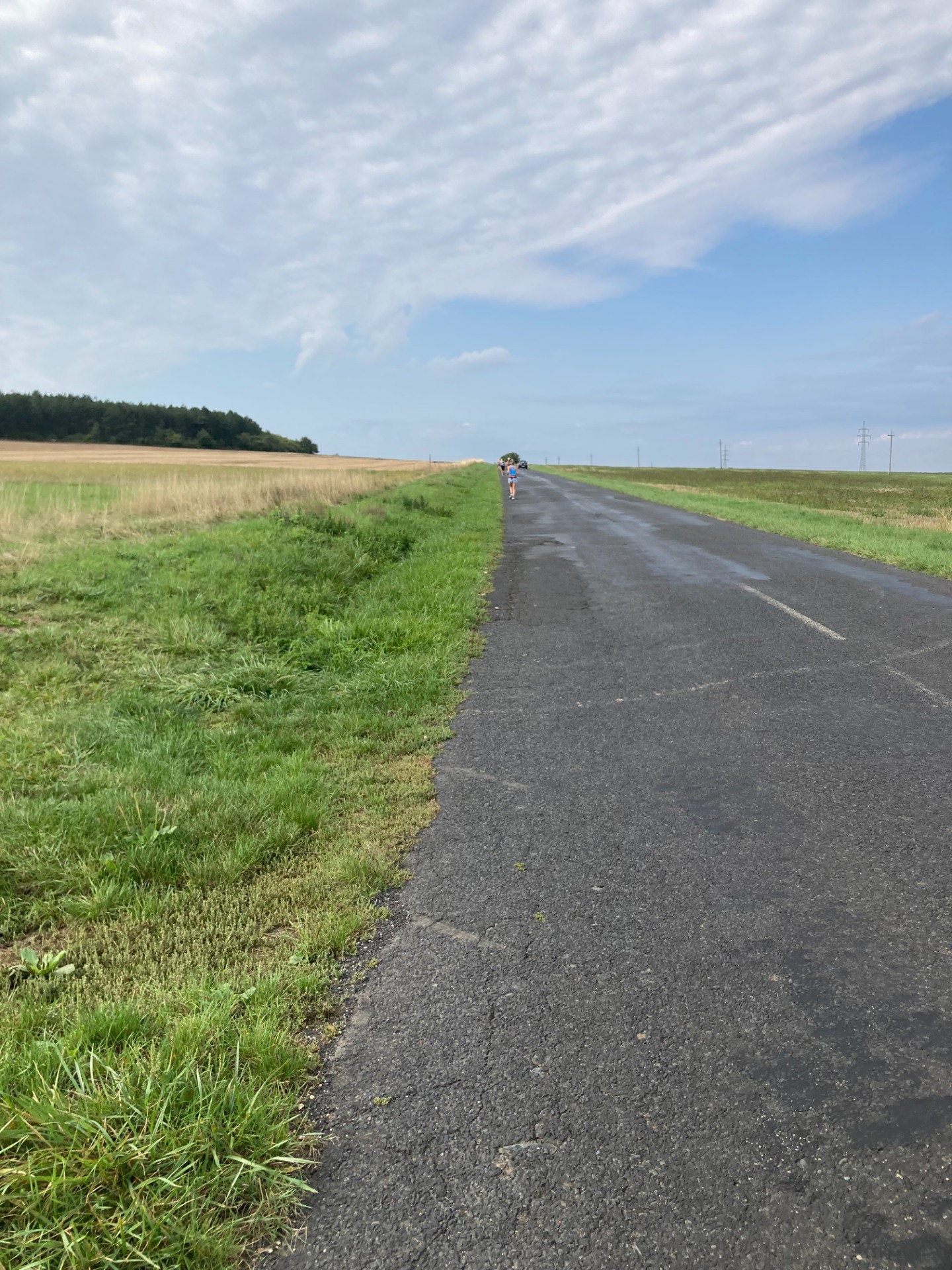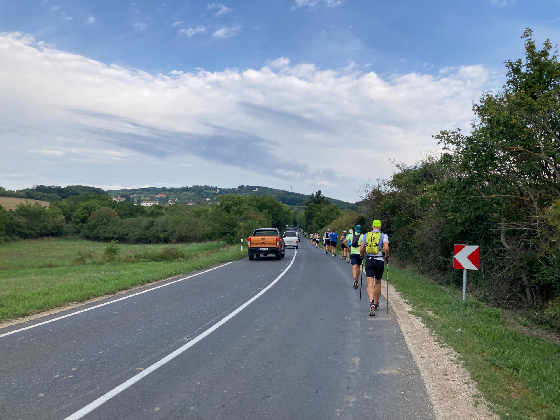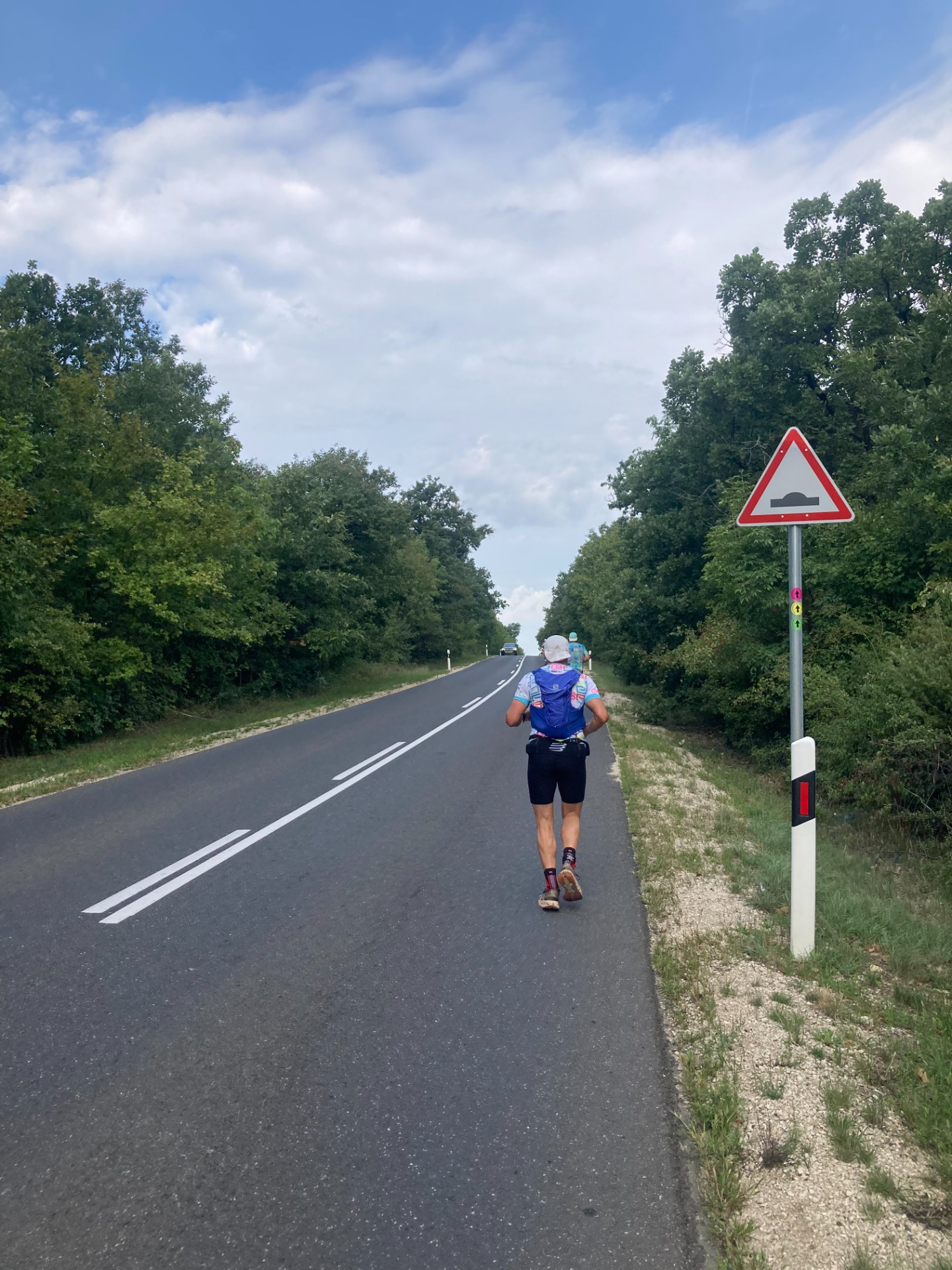 Persze olyan 15 kilométer ami egy izmos 4,5 kilométeres 170m szintes mászással indul, ennek a java része napsütötte úton halad. Az emelkedő alján lévő frissítőn alaposan bemosakodtam, ittam és feltöltöttem a kulacsomat.