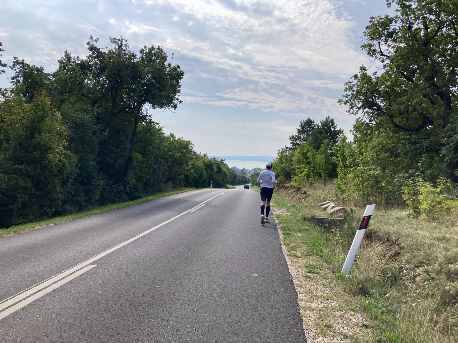 Ő persze kisvártatva elhúzott, de aztán egészen a Balaton-partig sikerült úgy 2-300 méter távolságból követnem őt.