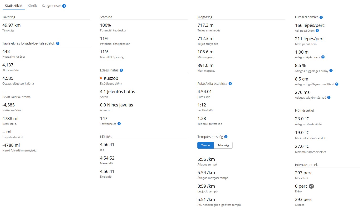Persze ebbe nem fér bele sem a frissítőpontokon való időzés, sem az emelkedőkön való séta.