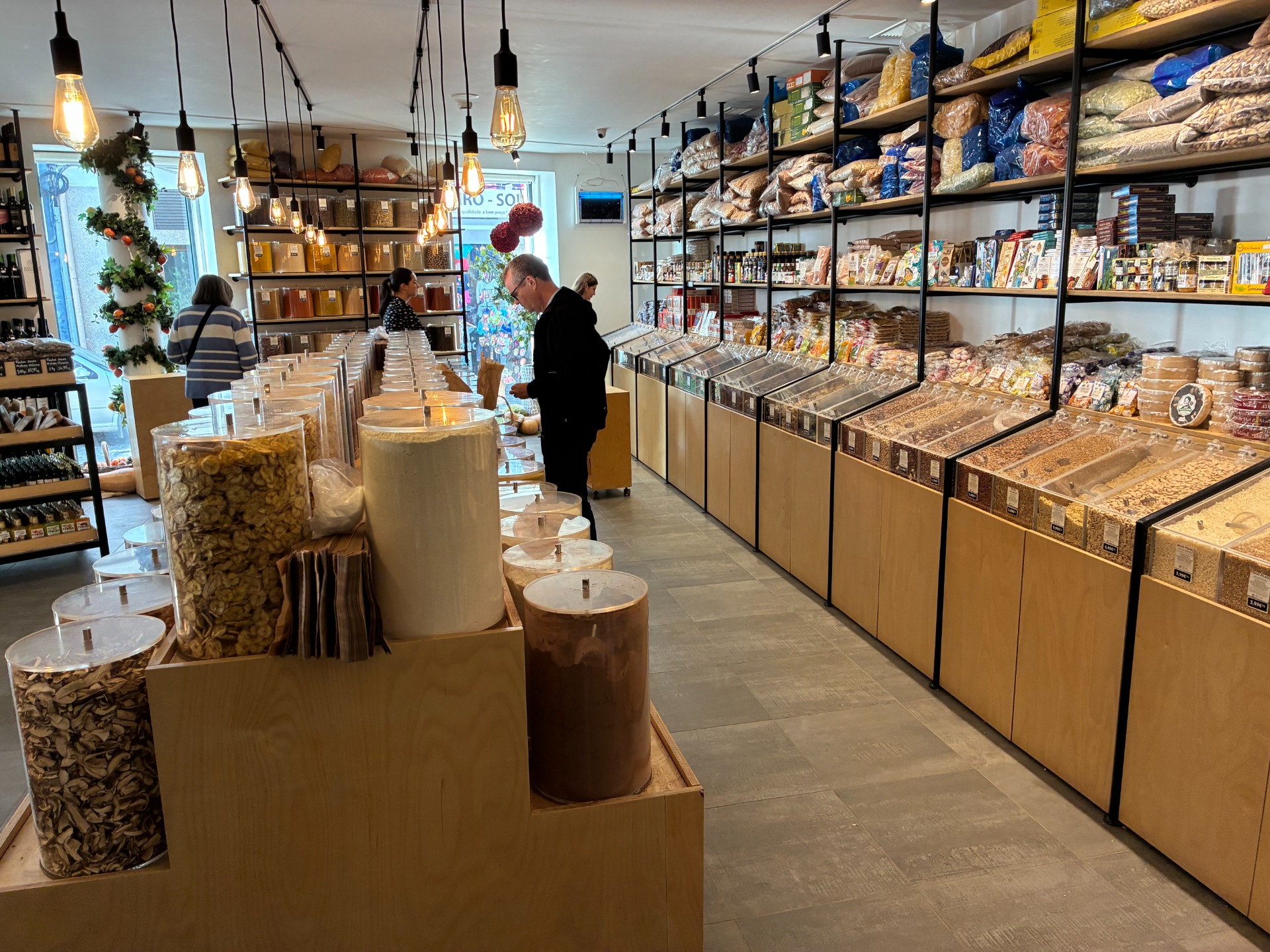 Este pedig végre sétálgattunk Ribeira da Brava-ban a parton, meglátogattunk a piacot, egy kimért árukkal foglalkozó, csomagolóanyag mentes boltot és egy ajánlott éttermet, jót vacsoráztunk, majd megnéztük az itteni karácsonyi díszleteket és vásárt, közben ettünk churras-t, ami olyan mint a churros, csak vastagabb és töltött (egy pisztáciakrémest és egy nutellást).