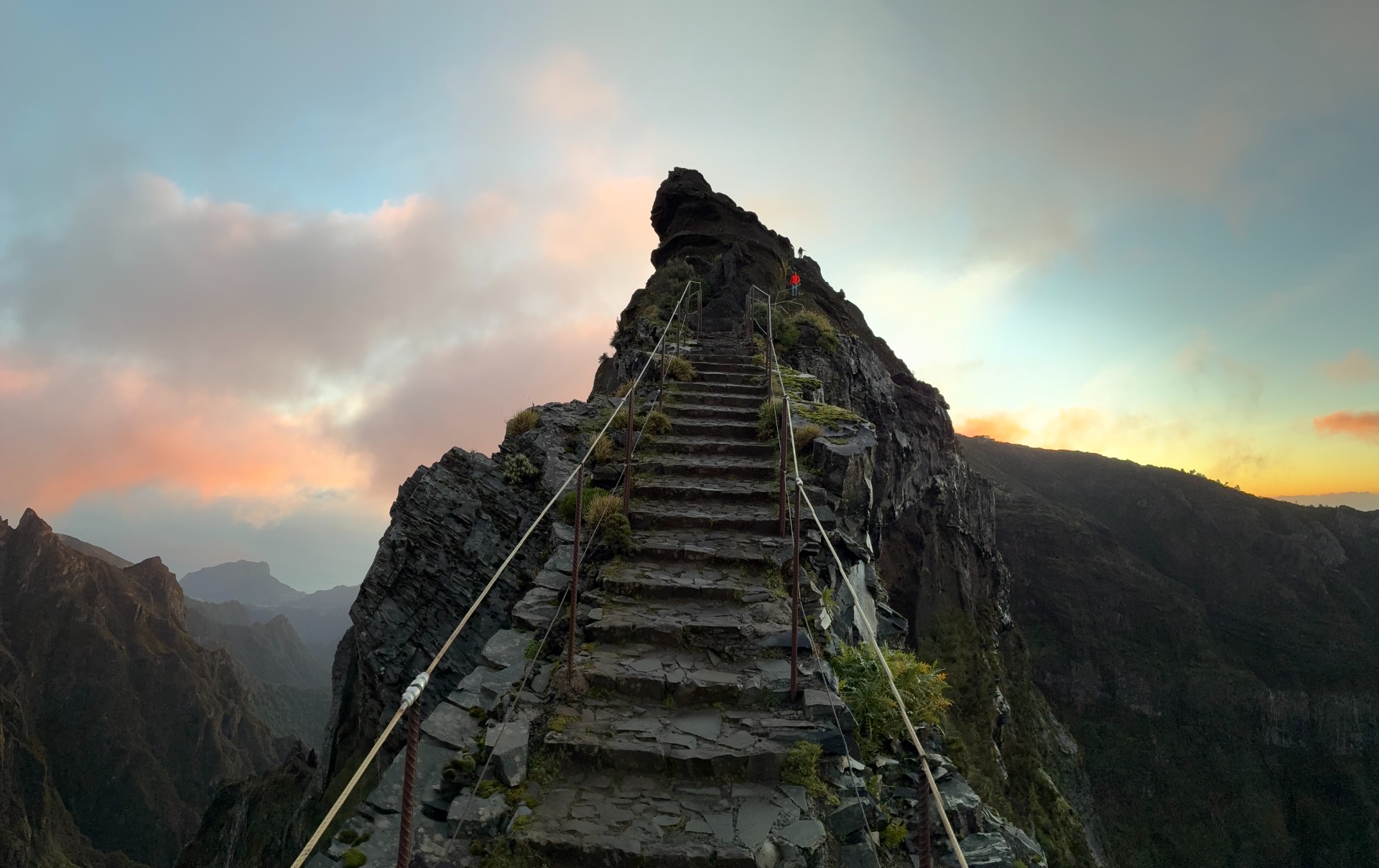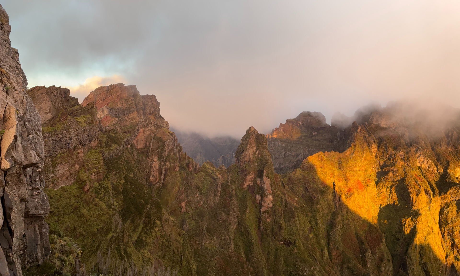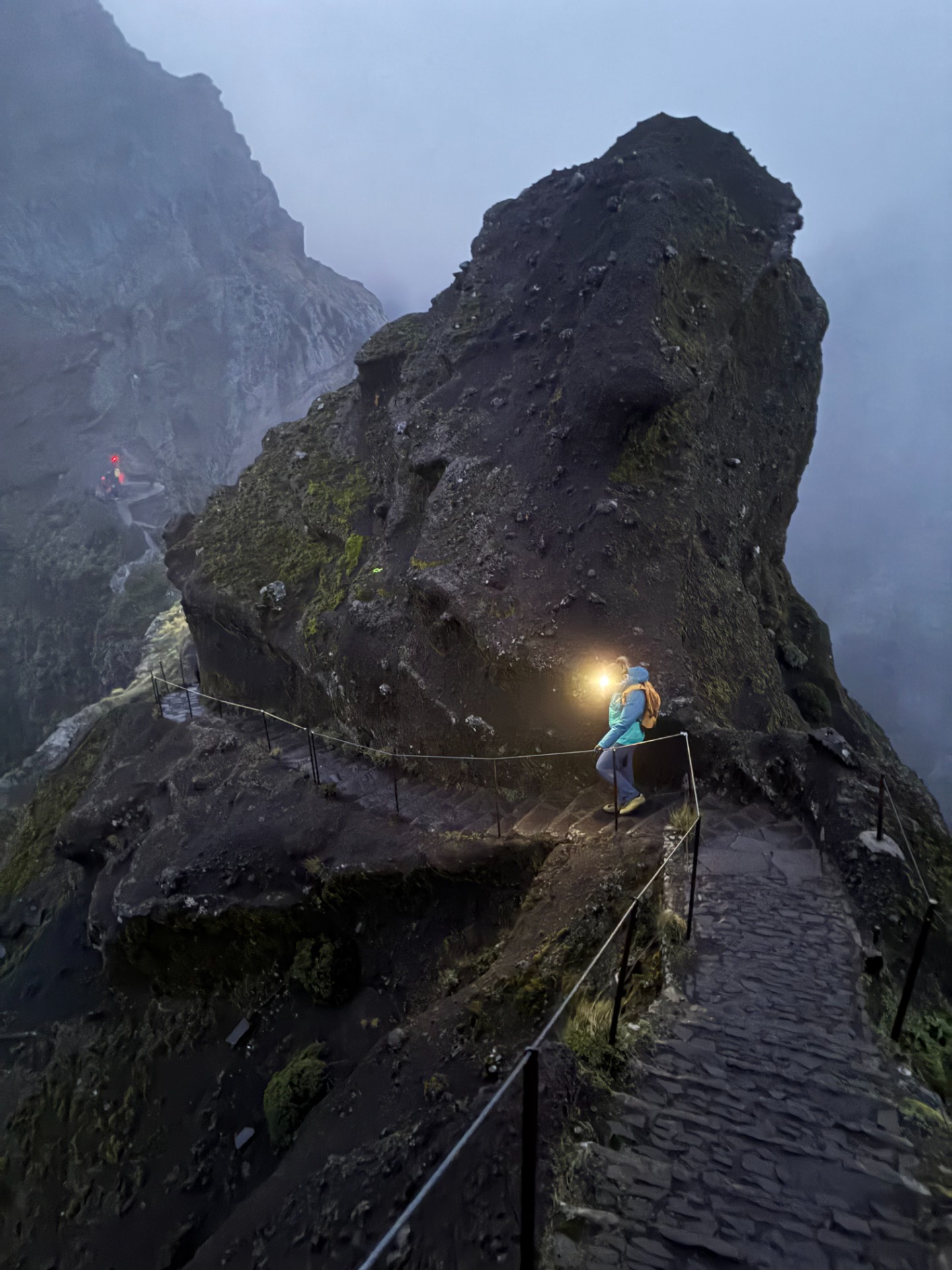 Aztán elkezdett világosodni, közben átértünk a Ninho do Manta nevű helyre, innentől sajnos teljesen le volt zárva a hegygerinc szirtjein vezető turistaút, de ezt már korábban is tudtuk.