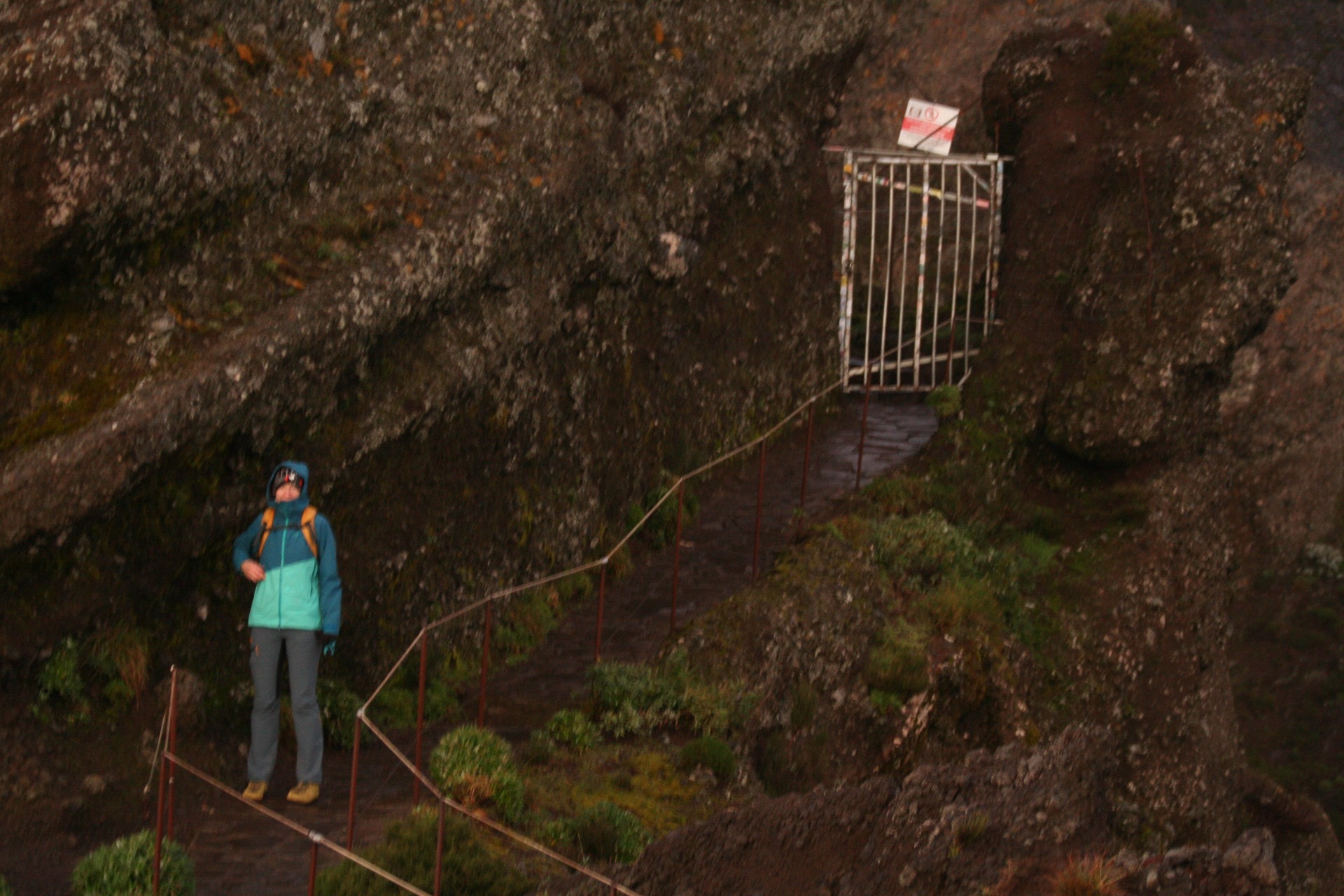 Elsőként a sziget közepén lévő fennsíkot céloztuk meg, 1400 méteren felhőben voltunk és mindössze 10 fok volt. Letettük az autót, majd elkirándultunk a Risco vízeséshez.
