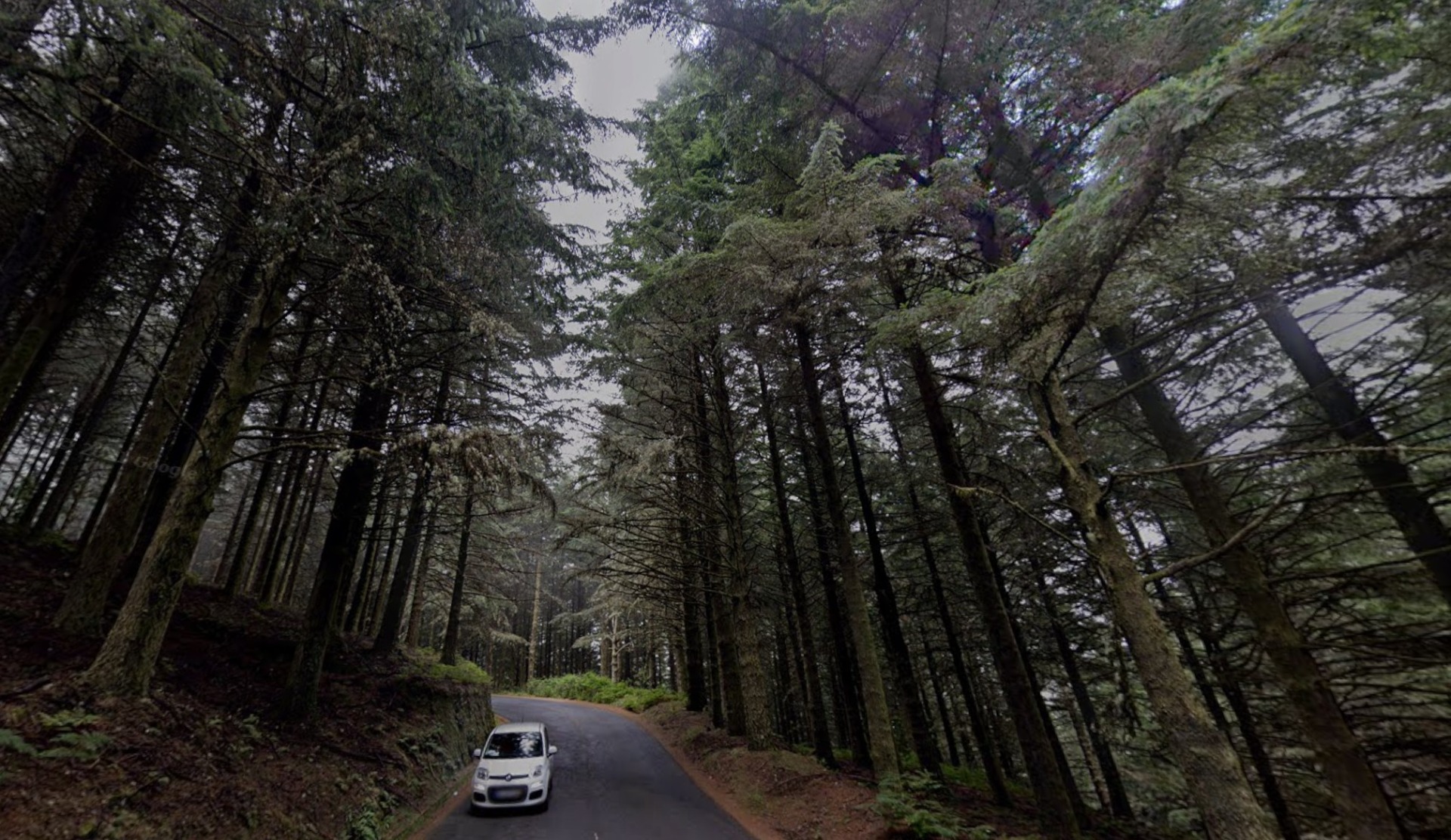 Lefelé már könnyebb volt az autóút a világosban, Santana városa felé vettük az irányt, közben olyan hegyvidéki fenyves esőerdőn vitt az út, hogy az állam leesett (itt megszokott dolog), mivel nem fotóztam, hoztam egy képet a street view-ról.