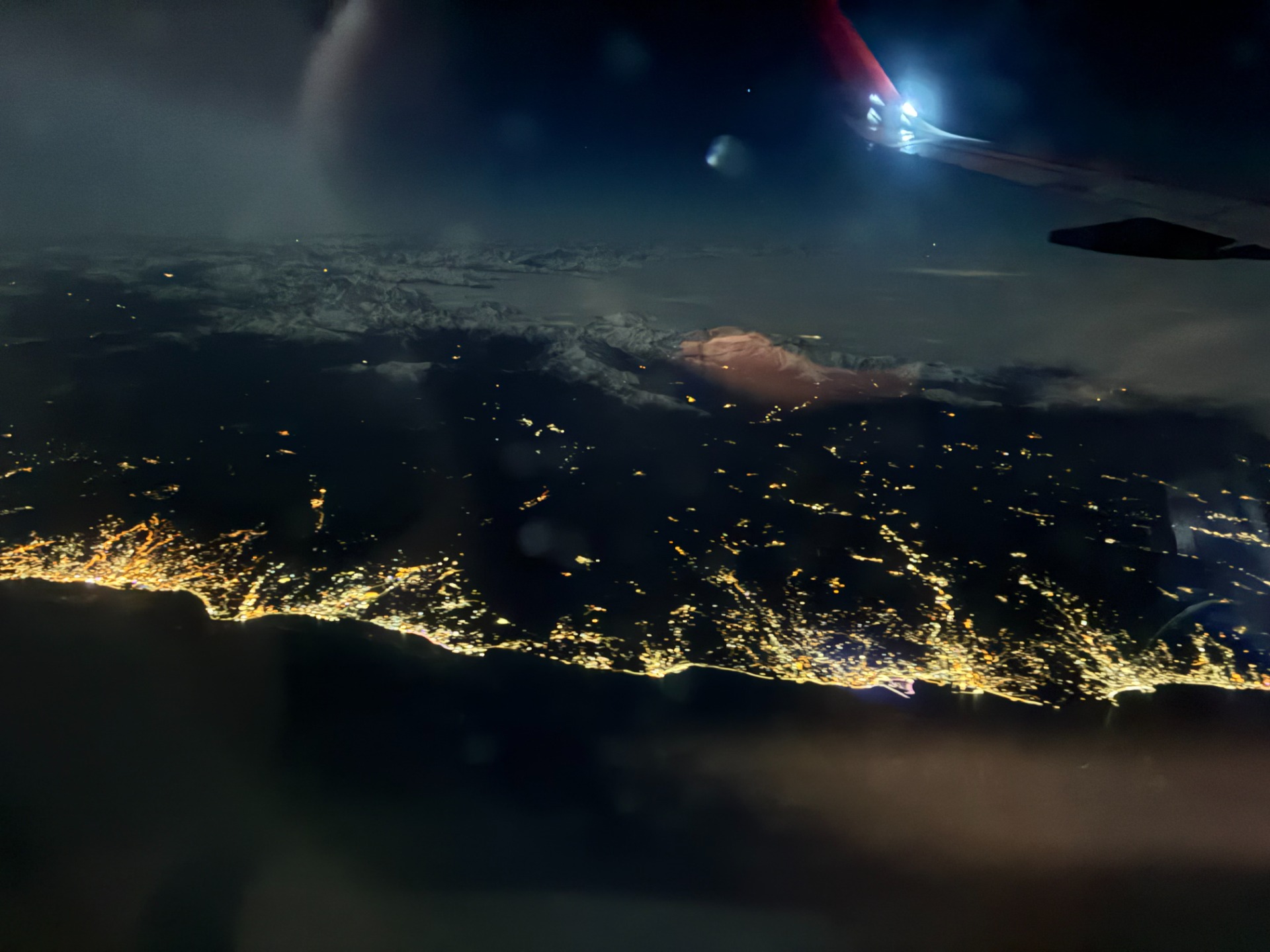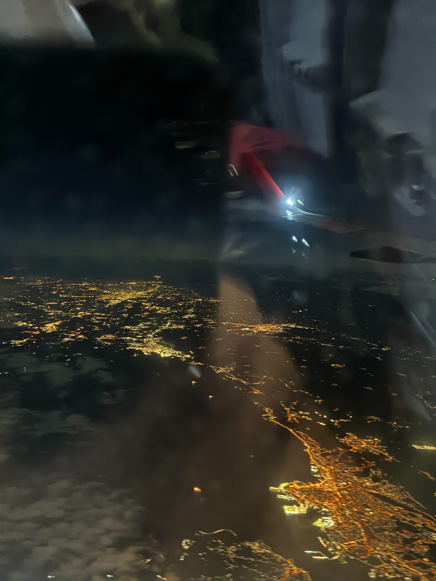 Miután Ljubjanától dére haladtunk, sejtettem, hogy a Balcsitól vagy északra, vagy délre húzunk majd el. Ekkora felkapcsolták a kabin világítást, így nem lehetett értékelhető képet csinálni, de a települések fényeit nézve szépen bejárhattam a Balaton teljes hosszát.